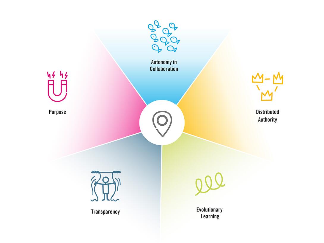 We believe in a land where organizations and people are driven by purpose, authority is distributed, organizations constantly adapt through evolutionary learning, leverage autonomous collaboration, and share information transparently. Moving into next:land means bringing these five fundamental qualities into your organizational life: